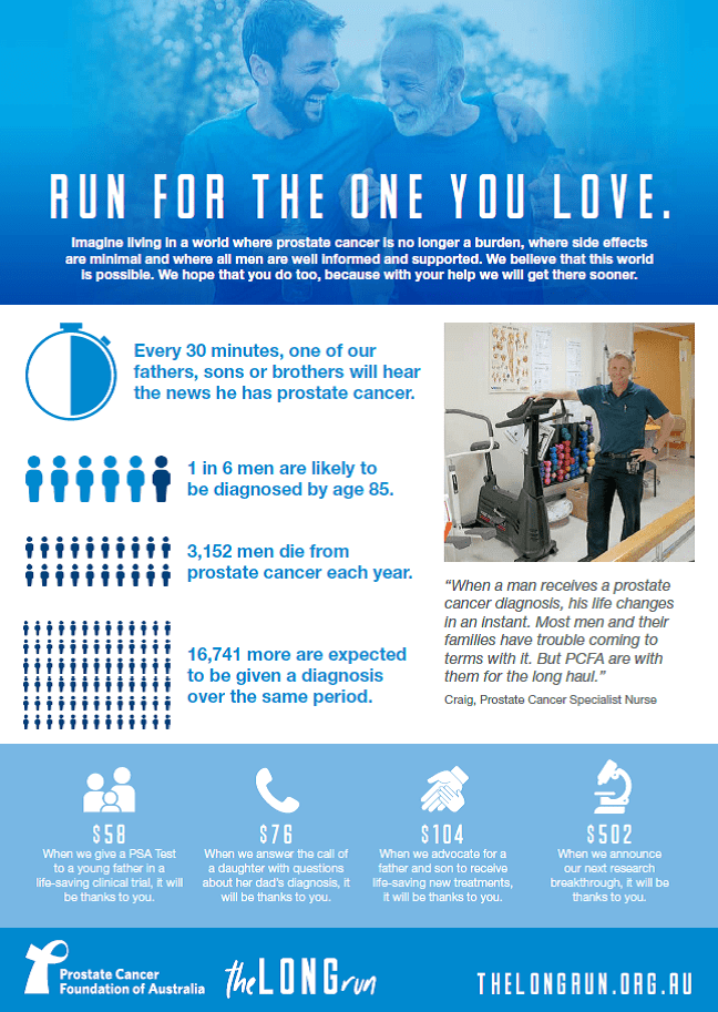 Prostate Cancer Foundation of Australia (PCFA) is a broadly-based community organisation and the peak national body for prostate cancer in Australia. They are dedicated to reducing the impact of prostate cancer on Australian men, their partners and their families. Check out the information flyer below from the PCFA or check out their website to learn more about Prostate Cancer.
